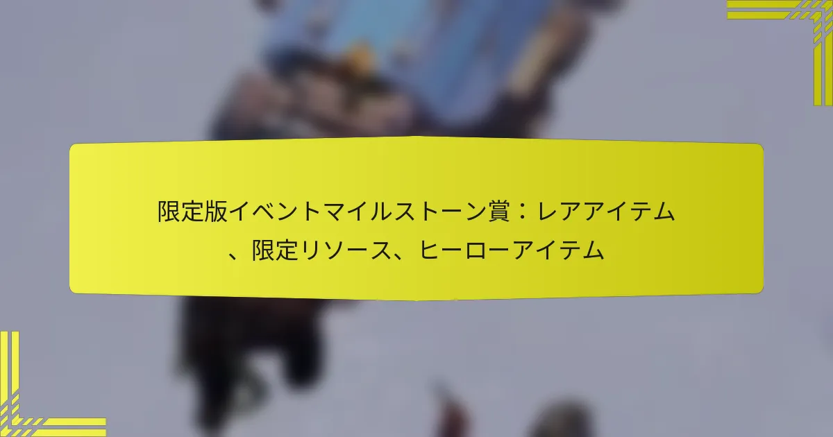ホワイトアウトサバイバルの限定版イベントマイルストーン賞は、プレイヤーに特別なイベント中にユニークな報酬を獲得するチャンスを提供します。これらの賞には、レアアイテム、独占リソース、そしてゲームプレイを大幅に向上させ、競争上の優位性を提供するヒーローアイテムが含まれています。特定のイベントに参加し、ユニークなチャレンジをクリアすることで、プレイヤーはこれらの貴重な報酬をアンロックし、より大きな達成感を味わうことができます。 ホワイトアウトサバイバルにおける限定版イベントマイルストーン賞とは? ホワイトアウトサバイバルの限定版イベントマイルストーン賞は、プレイヤーが特別なイベント中に獲得できるユニークな報酬です。これらの賞には、レアアイテム、独占リソース、そしてゲームプレイを向上させ、重要な利点を提供するヒーローアイテムが含まれています。 限定版賞の定義と重要性 限定版賞は、特定のイベントやゲーム内のマイルストーンに関連して、限られた期間のみ利用可能な特別な報酬です。これらはプレイヤーの参加を促進し、イベントに参加する緊急感を生み出すように設計されています。 これらの賞の重要性は、そのユニークなゲームプレイの利点とコレクション性にあります。これらのアイテムを取得したプレイヤーは、通常のゲームプレイでは得られない利点を享受できるため、非常に求められています。 さらに、これらの賞はコミュニティの参加を促進し、プレイヤーがどのようにそれらを取得するかについて戦略やヒントを共有することが多く、全体的なゲーム体験を向上させます。 賞の種類:レアアイテム、独占リソース、ヒーローアイテム 限定版賞は、レアアイテム、独占リソース、ヒーローアイテムの3つの主要なタイプに分類できます。それぞれのタイプは、ゲームプレイに大きな影響を与える独自の利点を提供します。 レアアイテム:これらは、見た目の向上や特別な能力を提供するユニークなコレクションアイテムです。その希少性から、プレイヤーの間で価値があります。 独占リソース:これらのリソースは通常、イベント外では入手できず、イベント期間中にアイテムをより効率的に作成またはアップグレードすることを可能にします。 ヒーローアイテム:これらのアイテムは特定のヒーローに関連しており、その能力を強化し、戦闘やチャレンジでより強力にします。 イベントの文脈とタイムライン 限定版賞は、年間を通じてさまざまな時期に発生する特定のイベントに関連しています。これらのイベントは、季節の祝いやゲームの記念日など、ユニークなチャレンジと報酬を提供します。 プレイヤーはイベントのタイムラインに注意を払うべきです。これらの賞は時間に敏感な機会であるため、イベントの早い段階で参加することで、最も望ましいアイテムを獲得するチャンスが増えます。 利益を最大化するために、プレイヤーはこれらのイベントに合わせてゲームプレイを計画し、イベントが終了する前にマイルストーン賞を獲得するために必要なタスクを完了することを確認する必要があります。コミュニティと関わることで、これらの限定イベントでの成功のための戦略に関する洞察を得ることもできます。 プレイヤーはどのように限定版イベントマイルストーン賞を獲得できますか? プレイヤーは、ユニークなチャレンジと目標を特徴とする特定のイベントに参加することで、限定版イベントマイルストーン賞を獲得できます。これらの賞には、ゲームプレイを向上させ、重要な利点を提供するレアアイテム、独占リソース、ヒーローアイテムが含まれています。 イベントへの参加要件 これらのイベントに参加するには、プレイヤーはイベントによって異なる特定の要件を満たす必要があります。通常、プレイヤーはアクティブなアカウントを持っている必要があり、特定のレベルに達するか、予備クエストを完了する必要があります。 一部のイベントでは、プレイヤーがチームやギルドに参加することを要求する場合があり、参加者間の協力と戦略を促進します。さらに、プレイヤーは特定の条件や締切についてのイベント発表に注意を払うべきです。 マイルストーン完了基準 マイルストーンは、プレイヤーがイベント中に賞を獲得するために達成しなければならない特定の目標です。これらの基準には、一定数のタスクを完了すること、設定された数の敵を倒すこと、または特定のアイテムを収集することが含まれます。 マイルストーン 基準 賞 マイルストーン 1 5つのチャレンジを完了 レアアイテム マイルストーン 2 100のリソースを収集 独占リソース マイルストーン…